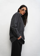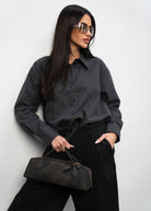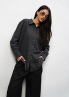 Koszula o delikatnie oversizowym fasonie w kolorze grafitowym, wykonana z przytulnej bawełny. Posiada prosty krój, długi rękaw. Koszula tworzy idealny duet z naszymi spodniami Sophia Grey.